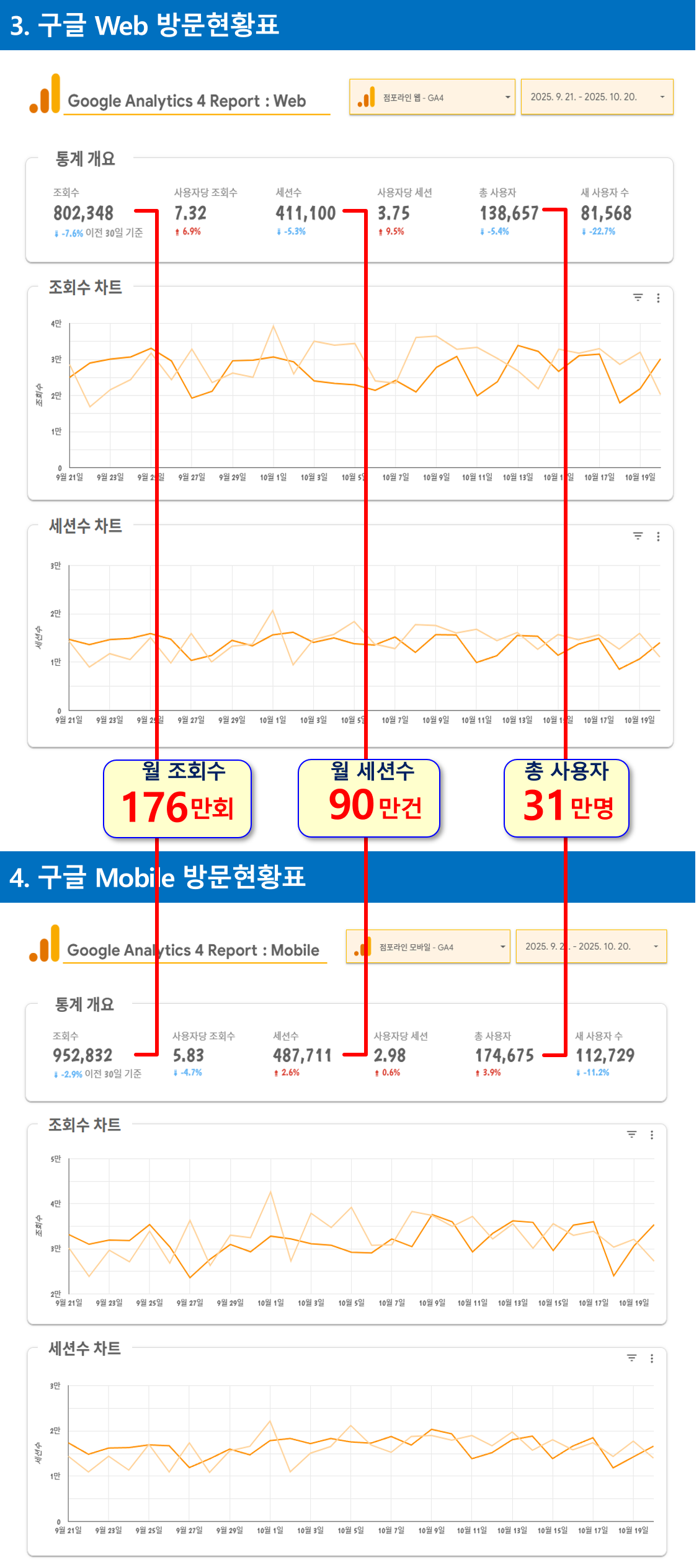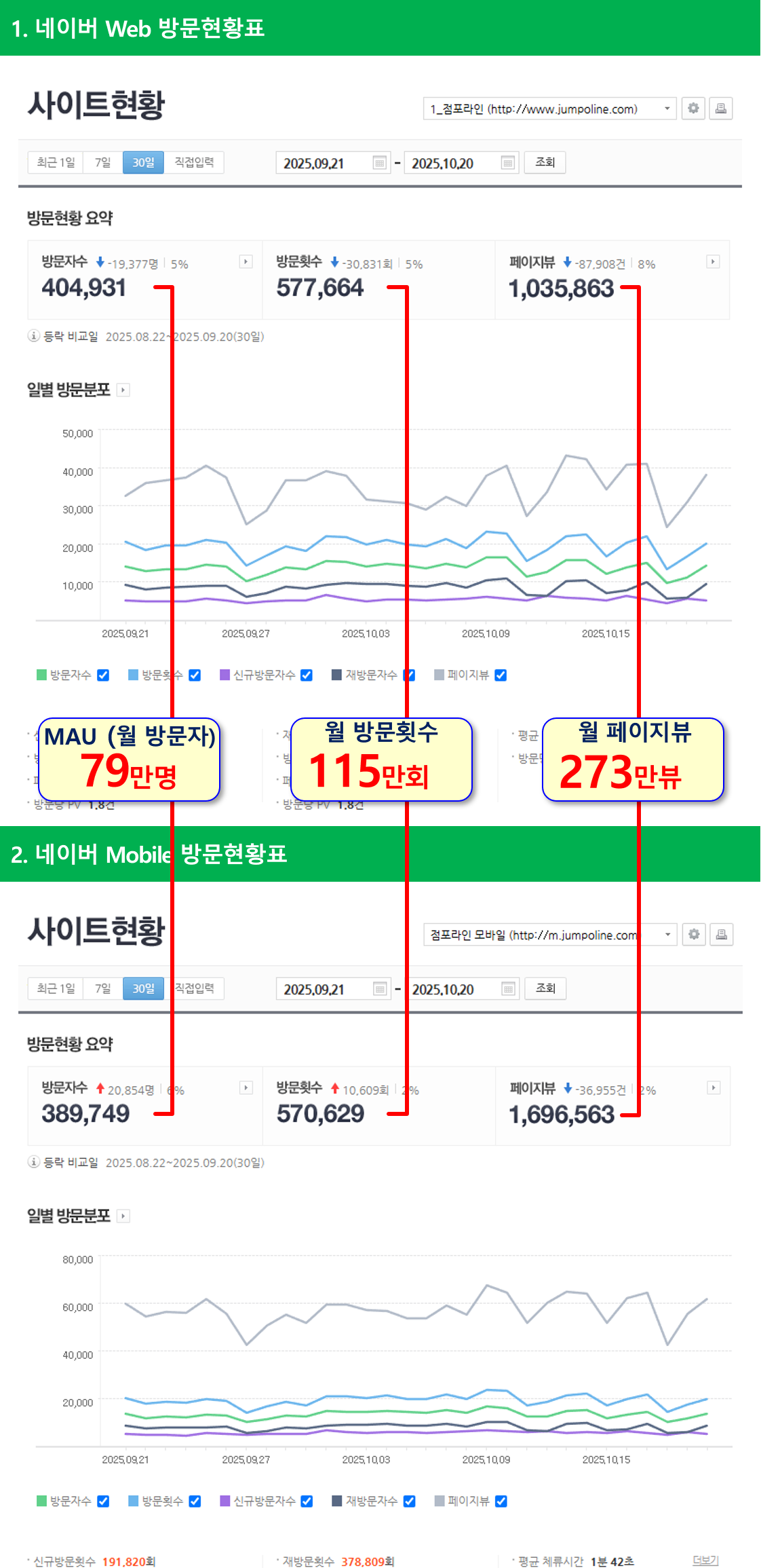 점포라인 웹/모바일 방문자 현황입니다.